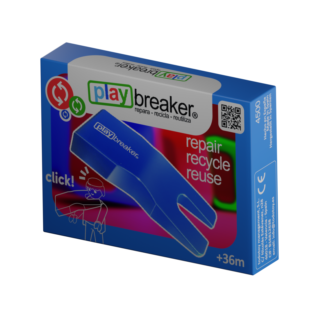 La herramienta playbreaker®, está diseñada principalmente para desmontar y reparar tu muñeco favorito, sustituyendo las piezas dañadas, reciclar estas piezas llevándolas a un gestor de residuos de plásticos autorizado y finalmente reutilizar el juguete, dándole una nueva vida y así garantizar la economía circular.