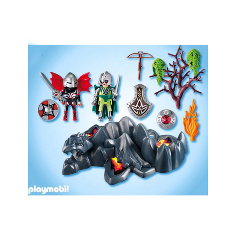 Playmobil 4147 Roca Dragón con dos caballeros armados en lucha junto al dragón mágico petrificado.