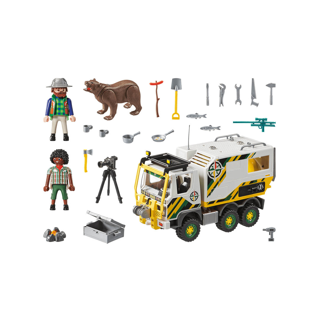 Playmobil 70278 Camión de aventuras. Vehiculo todoterreno con dos figuras, un gran oso y muchos complementos.