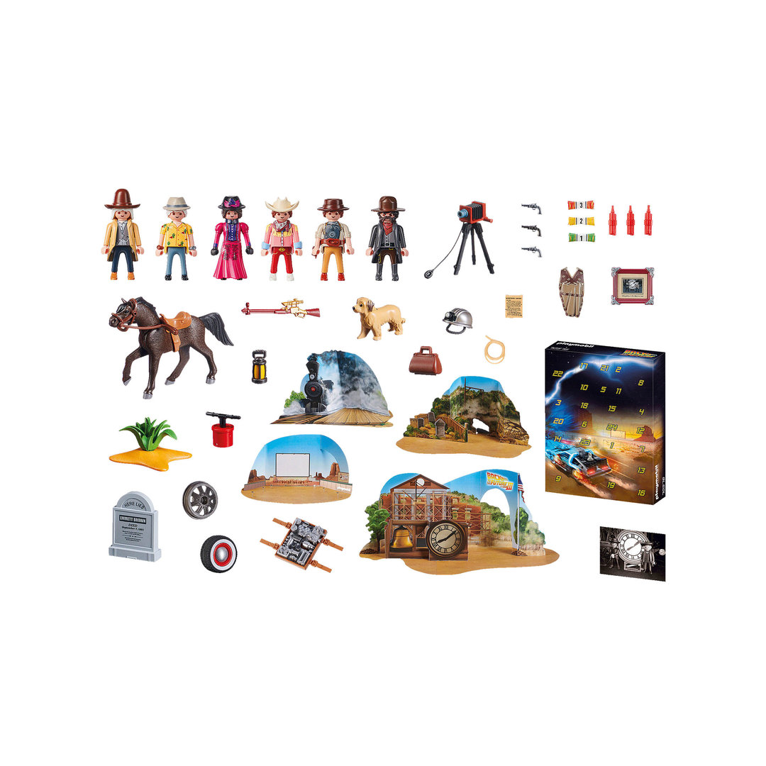 Playmobil 70576 Calendario de Adviento Regreso al futuro con seis figuras y muchos complementos, alguno muy novedoso.