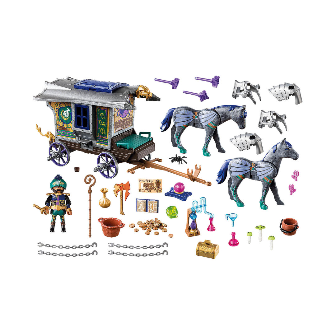 Playmobil 70903 Violet Vale – Carruaje de Mercaderes. El precioso carro del mago Armathor con escondite secreto y cañon.