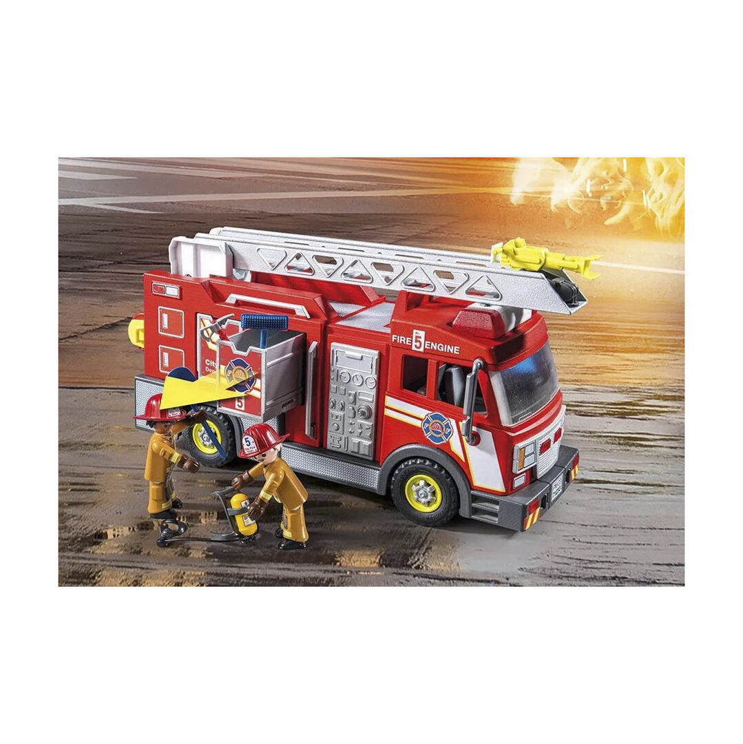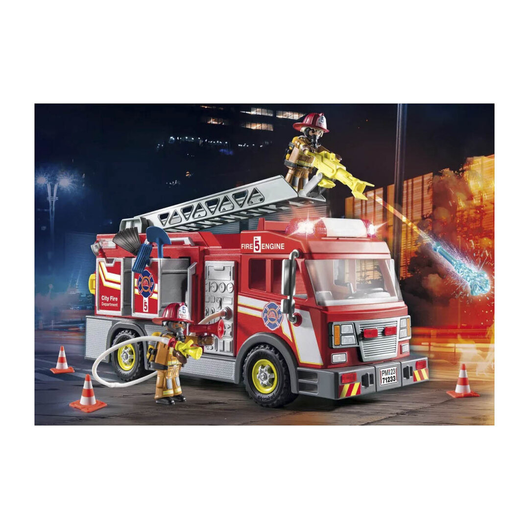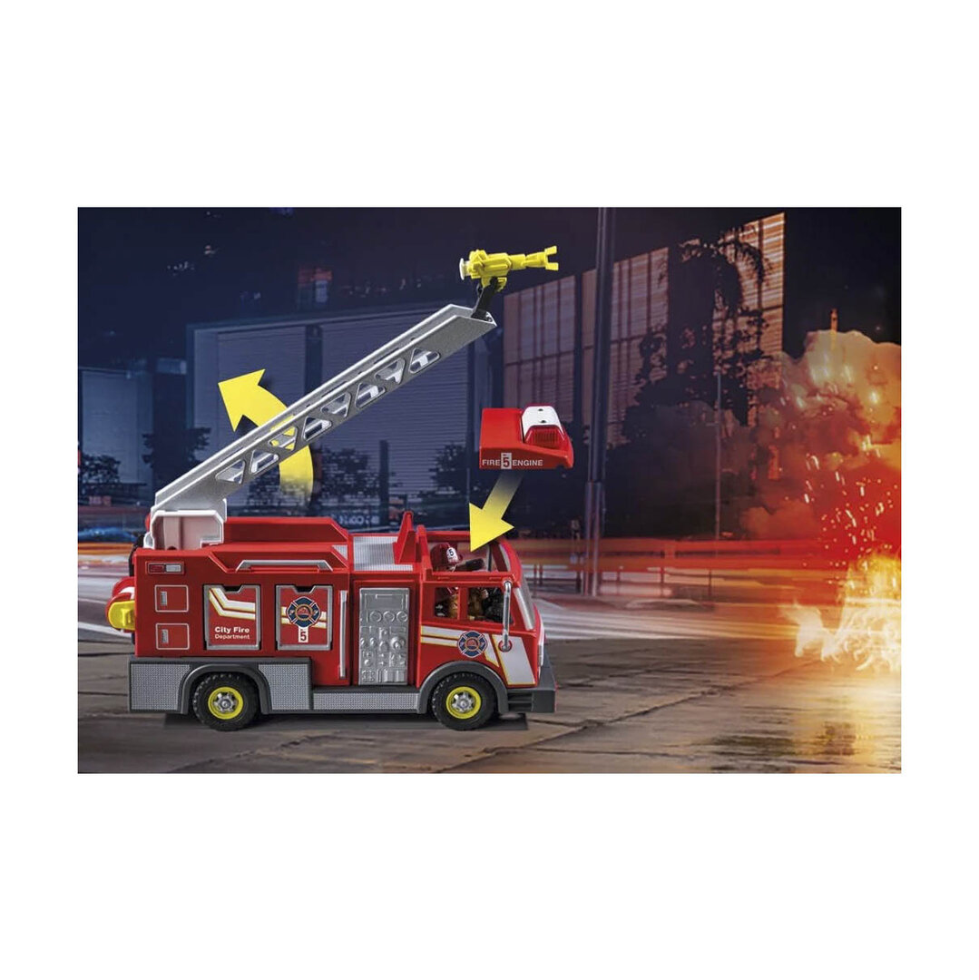 Playmobil 71233 Camión de bomberos con escalera que gira y cañon de agua giratorio, dos bomberos y complementos.
