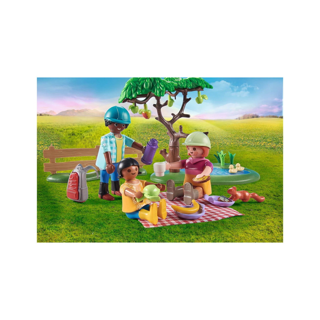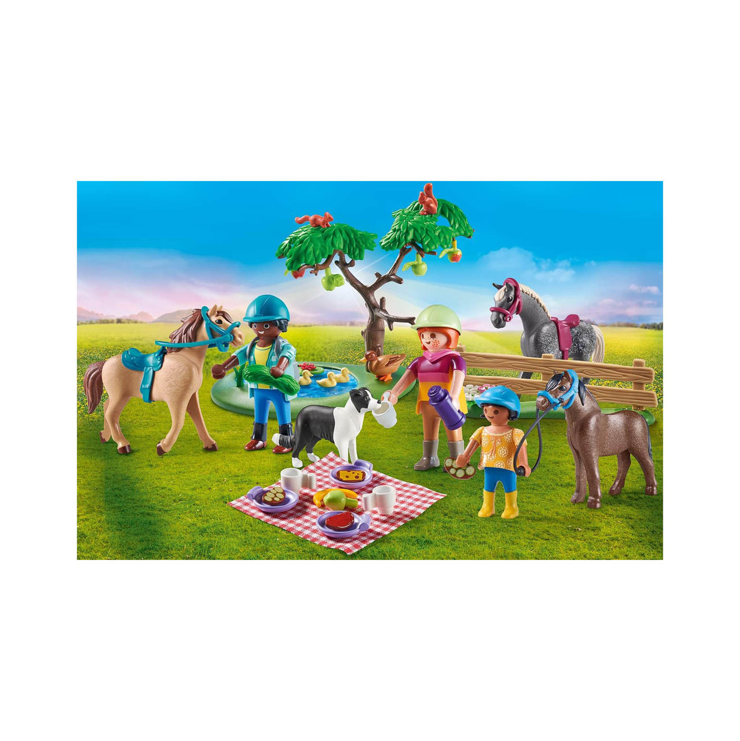 Playmobil 71239 Excursión de picnic con caballos. Tres f¡guras con sus monturas, estanque con árbol y muchos complementos.