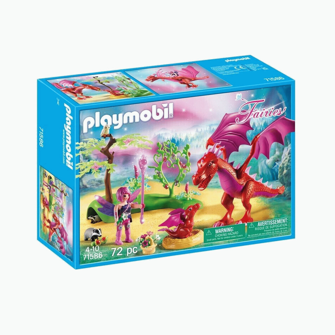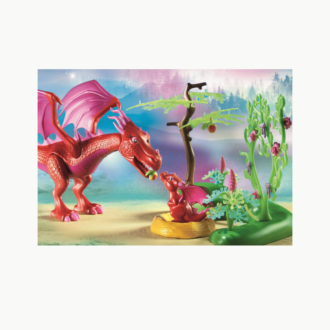 Playmobil 71586 Mamá dragón con bebé y un hada que puede montar a lomos del gran dragón mágico.