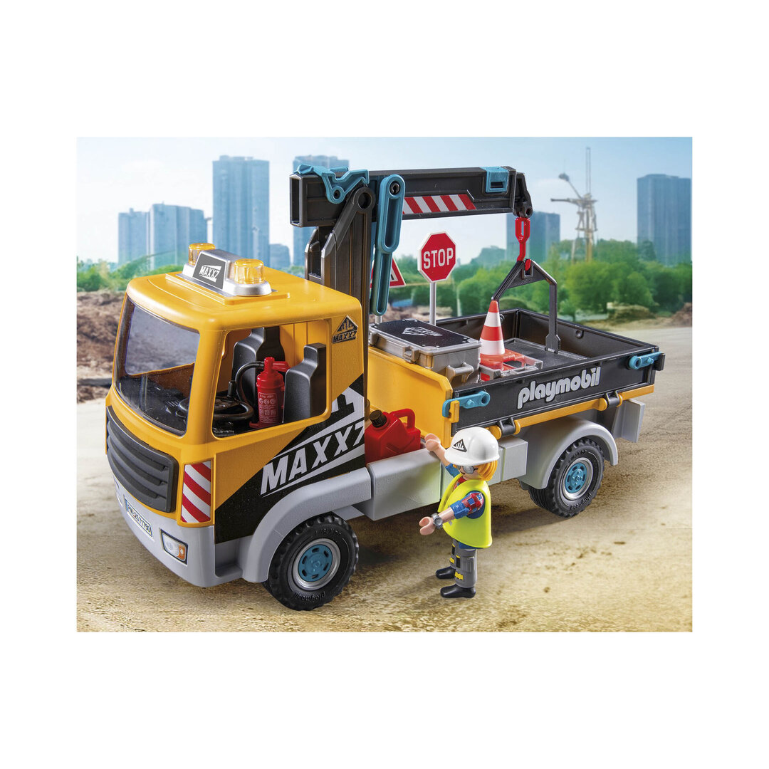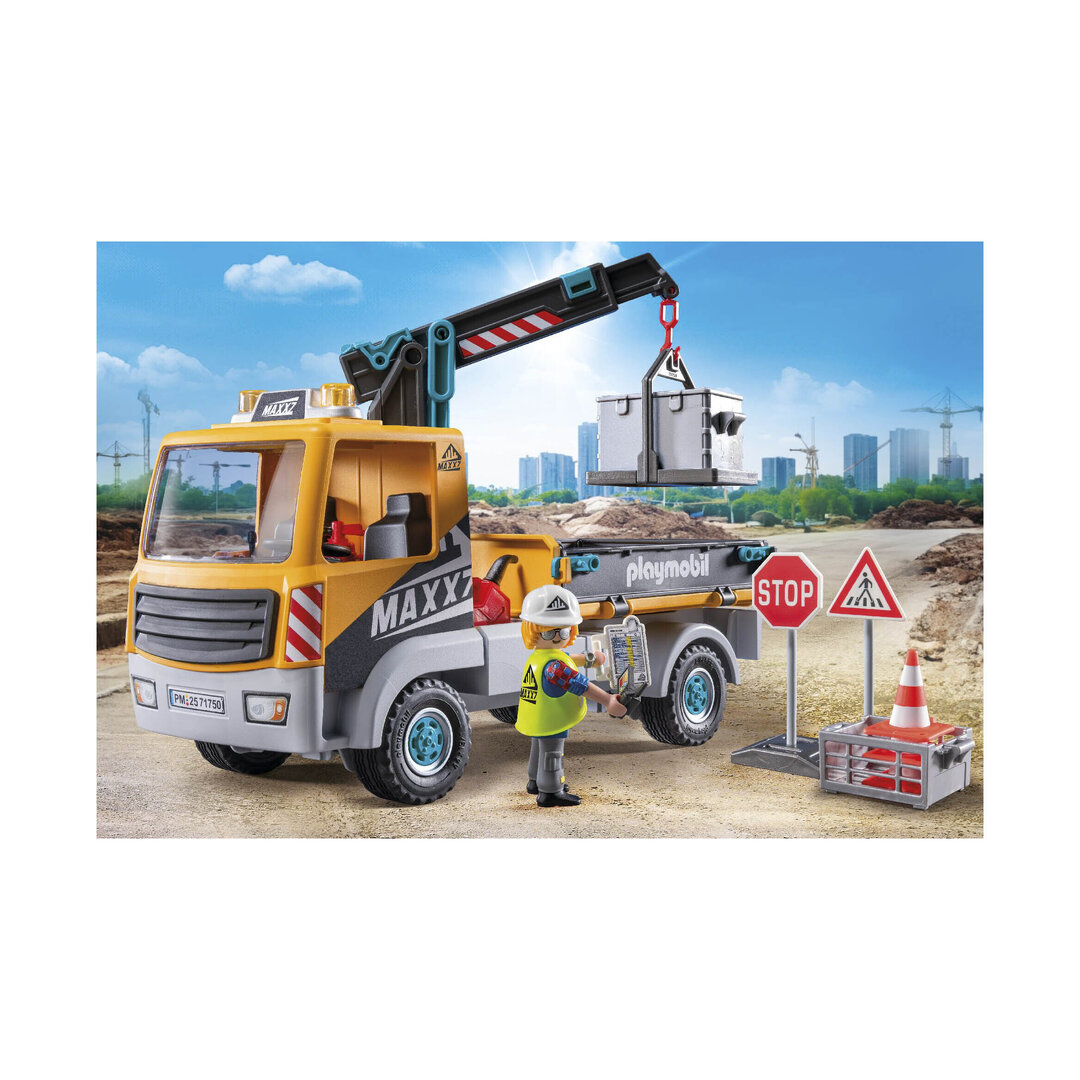Playmobil 71750 Camión de construcción con grúa con brazo telescópico que se puede extender y girar, para maniobrar los objetos.