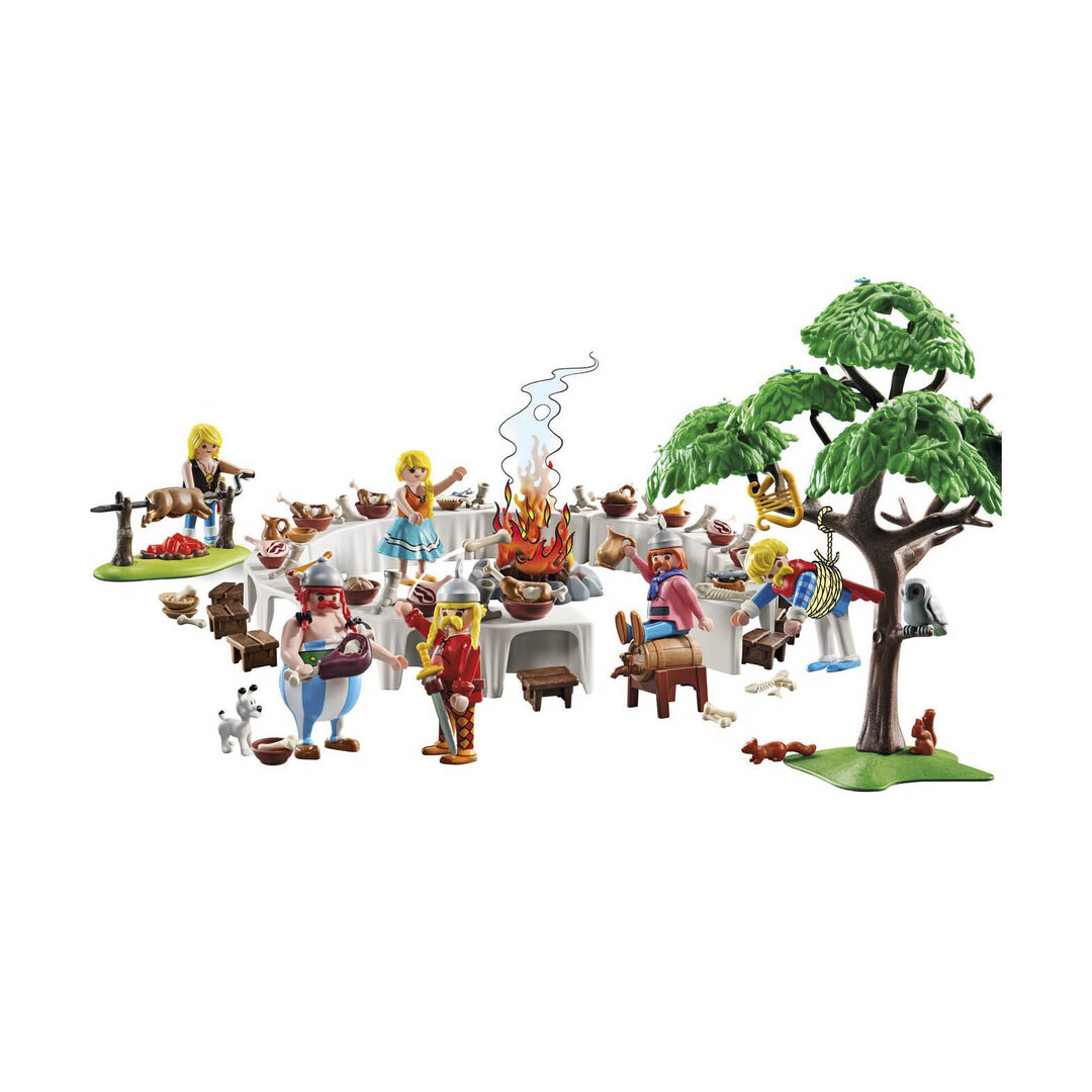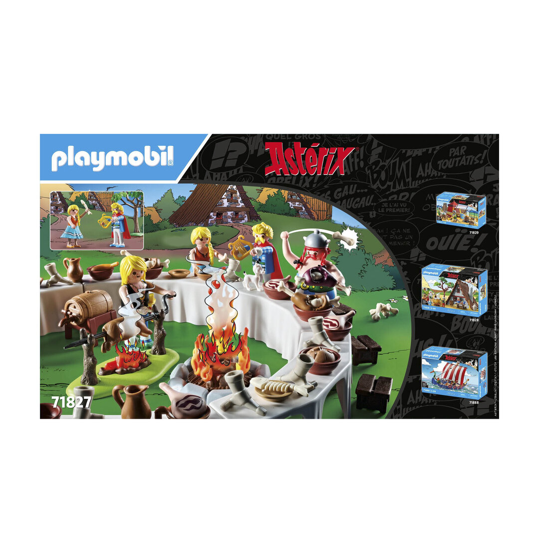 Playmobil 71827 Astérix: el banquete de la aldea. Reúne a los galos alrededor de las mesas, cargadas de platos, tazas y deliciosa comida.
