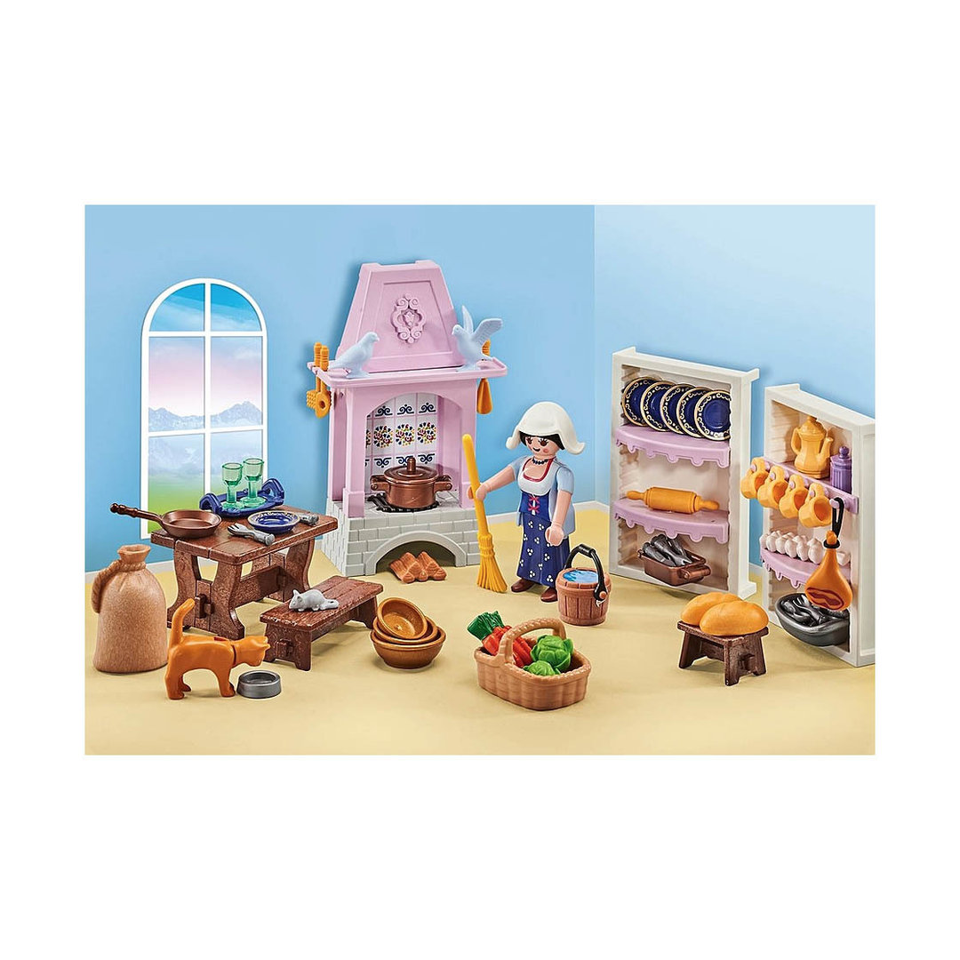 Playmobil 9875 Cocina del castillo completamente equipada con infinidad de complementos y una figura.