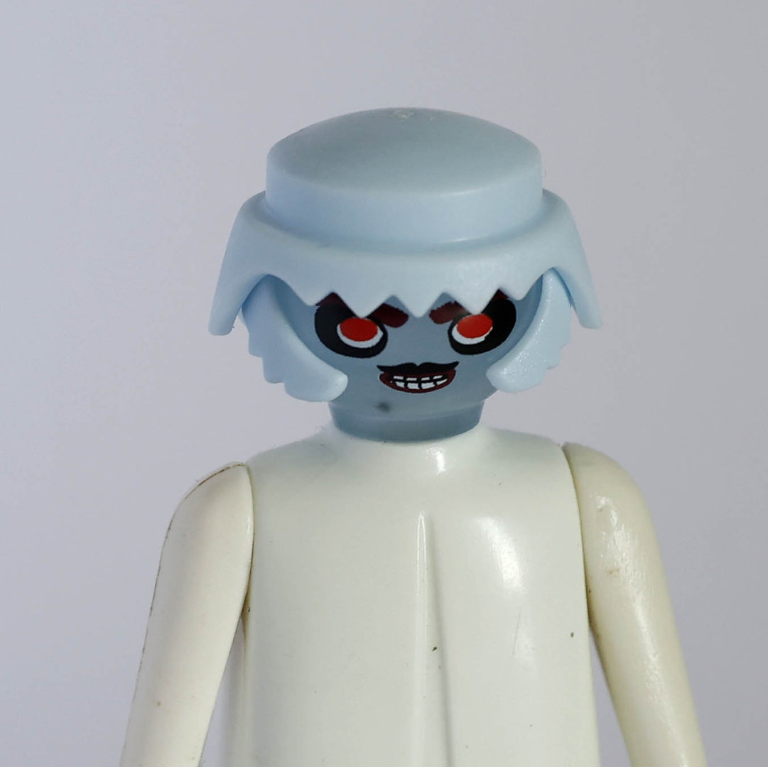 Playmobil Cabeza fantasma azul con patillas y pelo. Completa tu colección con las piezas sueltas de nuestra sección de despiece.