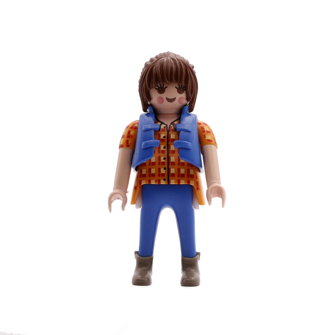 Playmobil Chica azul y naranja con botines. Una bonita figura que no podrá faltar en tu colección.