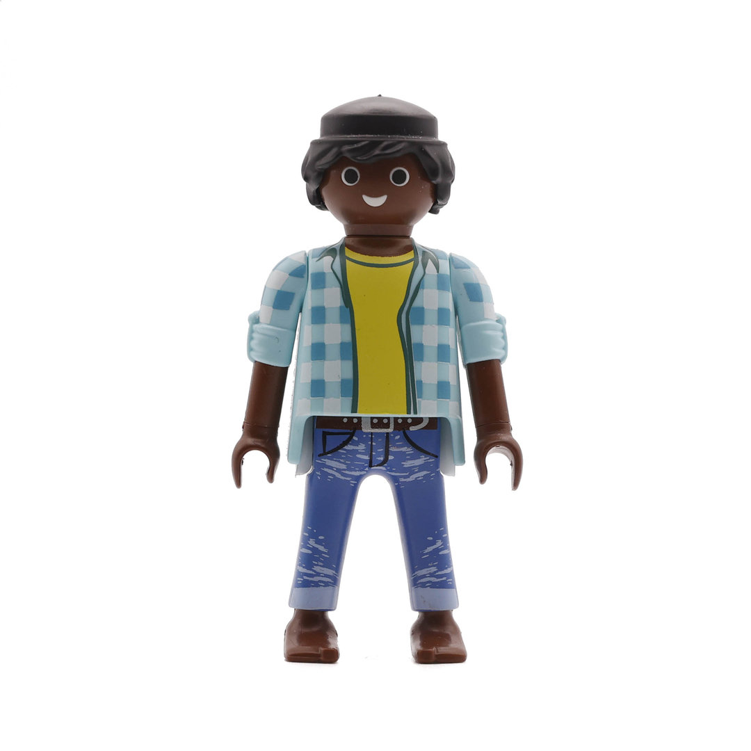 Playmobil Chico con vaqueros y camisa azul a cuadros. Una bonita figura que no podrá faltar en tu colección.