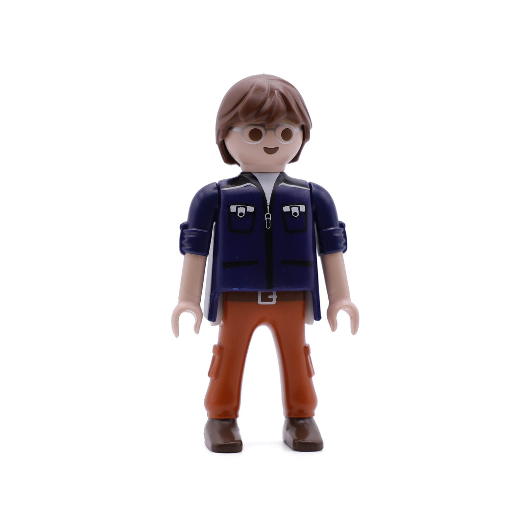 Playmobil Chico de azul y naranja con gafas. Una bonita figura que no podrá faltar en tu colección.