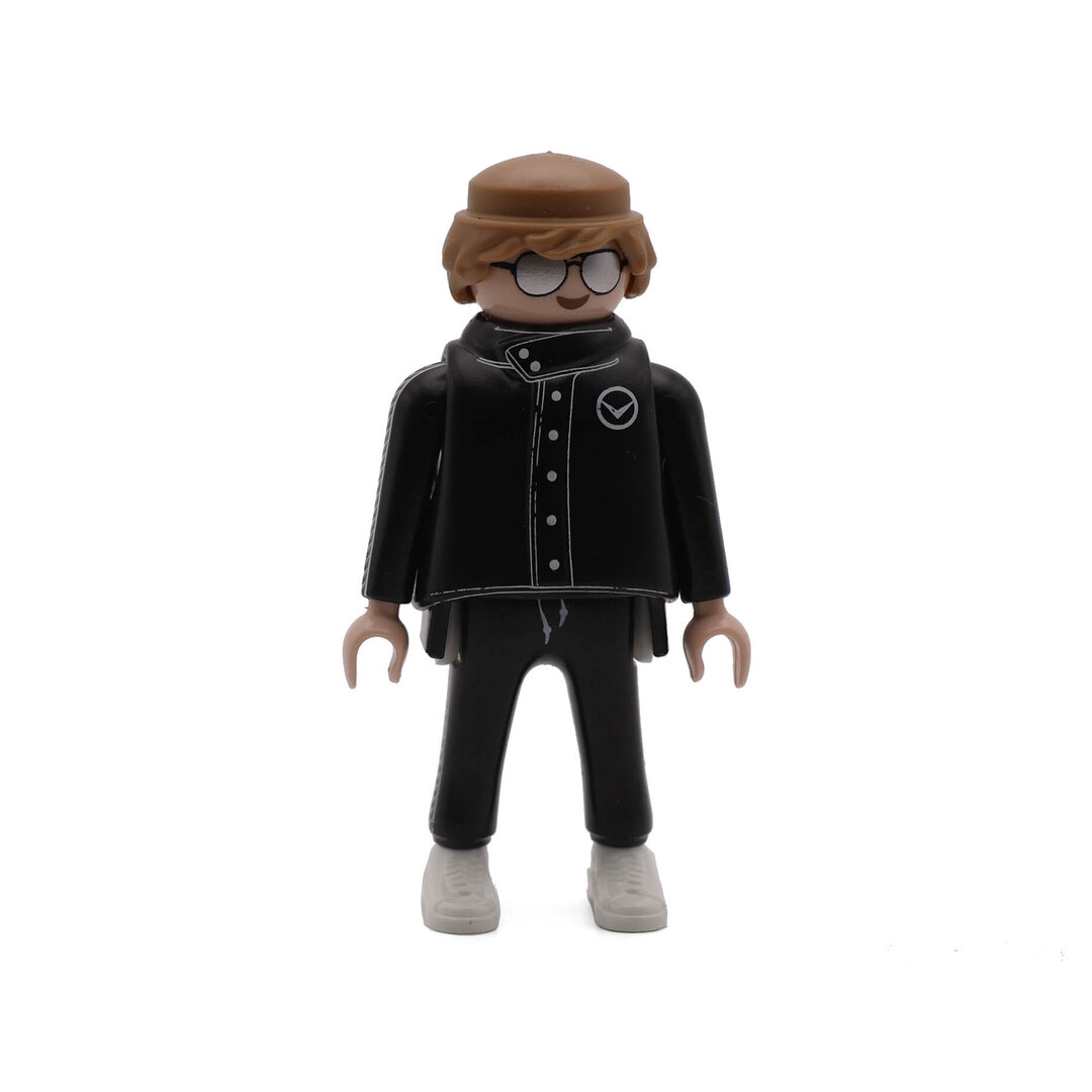 Playmobil Chico de negro con gafas plateadas. Una bonita figura que no podrá faltar en tu colección.