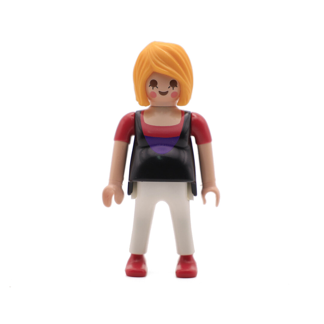 Playmobil Mujer embarazada blanco negro rojo. Una bonita figura que no podrá faltar en tu colección.