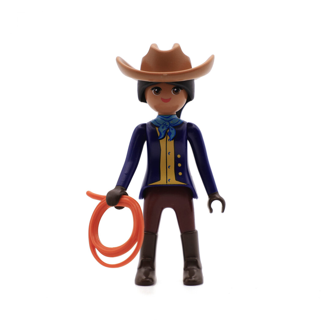 Playmobil Vaquera con sombrero y lazo. Una bonita figura que no podrá faltar en tu colección.